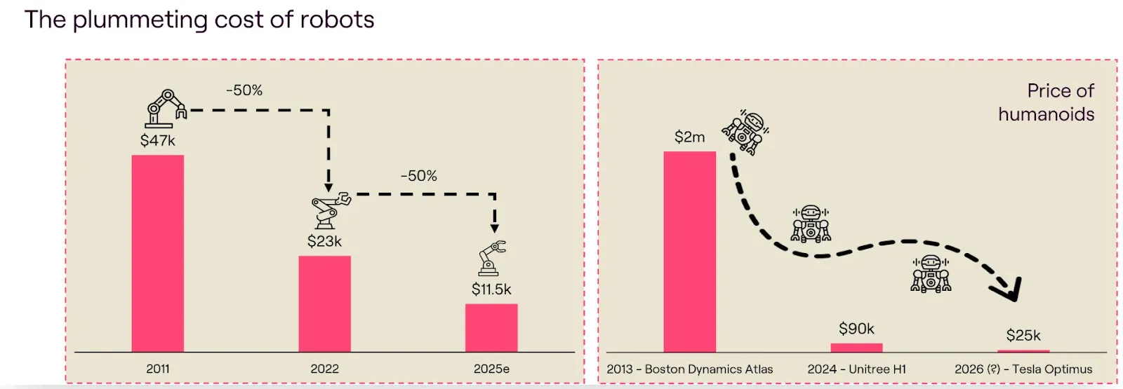 - Battery & actuation breakthroughs: Limited battery energy density and high actuator costs remain hard limits on deployment economics. These fundamental bottlenecks are still unsolved.